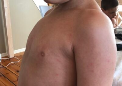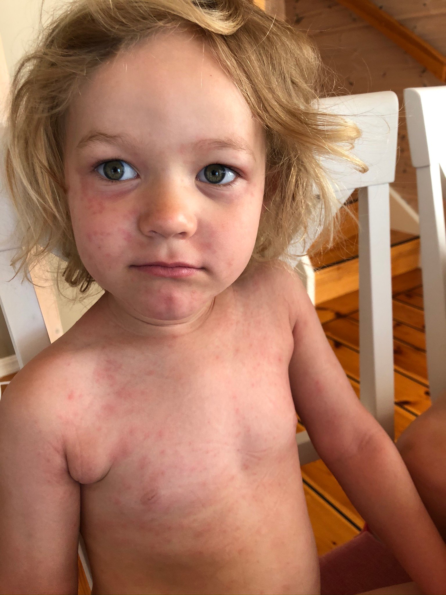 The school in Canary island, the Norwegian school of course got some pictures of my kids after we rented a cabin with a pool. All my kids got a heavy reaction from it and i documented it of course. I told the school that my kids will not be in a pool with chlorine before i took a test in the hospital. As everyone can see is that they made this point a heavy point in their child service case against me. I then wonder when people see the pictures, would you have sent your kids in a pool with chlorine again after this? We did not only suffer then, but the towels we used was bad the next week as well, even though i washed it really well. So when we put the towel that we had used in our face after we showered we got some reactions as well. Mainly with problems in the airways. So yeah they suffer more than just being in the pool.